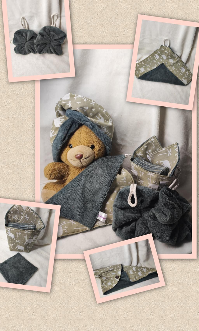 Ensemble visage et douche éléphants kaki